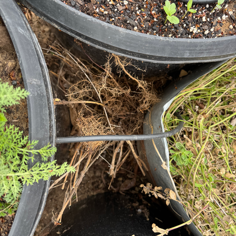 During January and February, we lost many of the moss verbena plants that we planted last spring. We need to replant these pots, so we removed the dead stems and their extensive root systems. However, instead of adding them to our brush pile we placed them in the open spaces between the pots and the flashing behind them. This will make a safe hiding place for reptiles and insects. This organic matter will gradually break down, and we will have space to add more to our mini-brush piles next year.